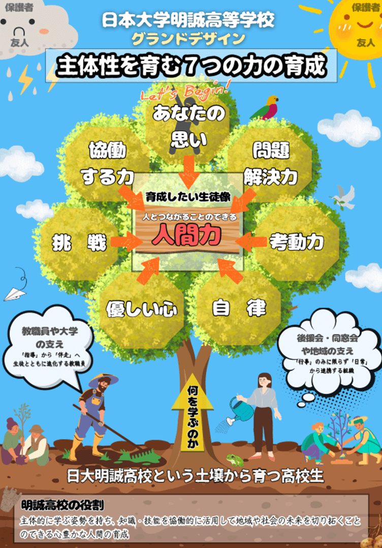 - 生徒一人ひとりが個性を大切にしながら、「あなたの思い」を実現する力を育てます。
